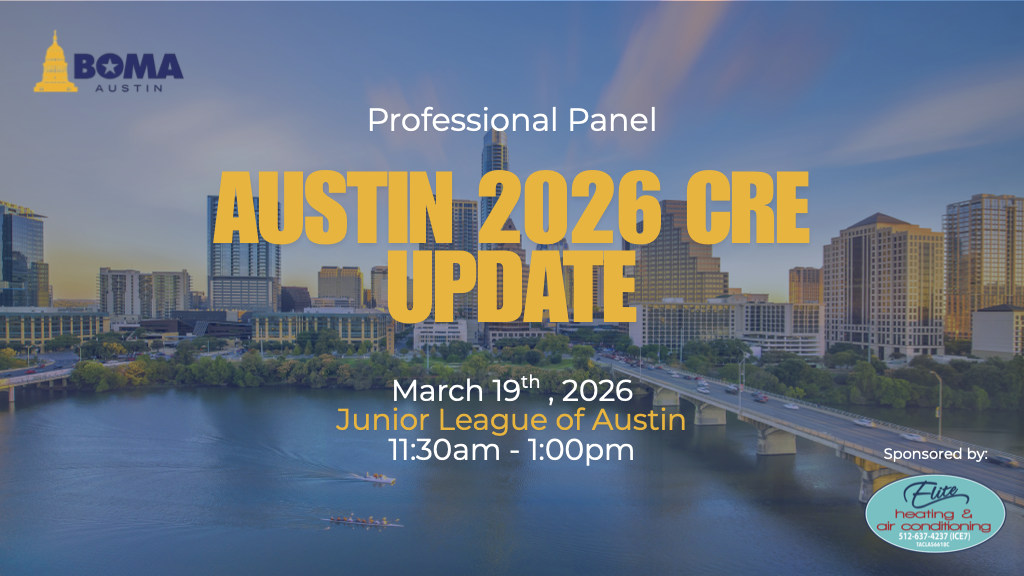 Join BOMA Austin on March 19th for an insightful panel discussion featuring industry experts as they share key trends and forecasts for the 2026 commercial real estate market. This is a must-attend event for professionals looking to stay ahead in an evolving industry.